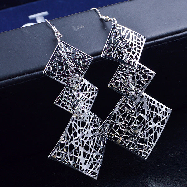 European And American Exaggerated Multi-layer Hollow Metal Wafer Earrings